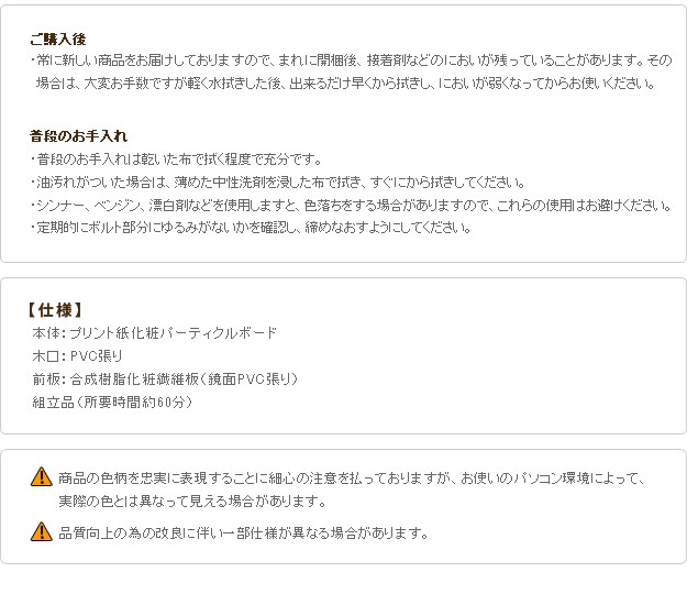 ●材質:本体-プリント紙化粧パーティクルボード、前面-合成樹脂化粧繊維板(鏡面PVC真空貼り)