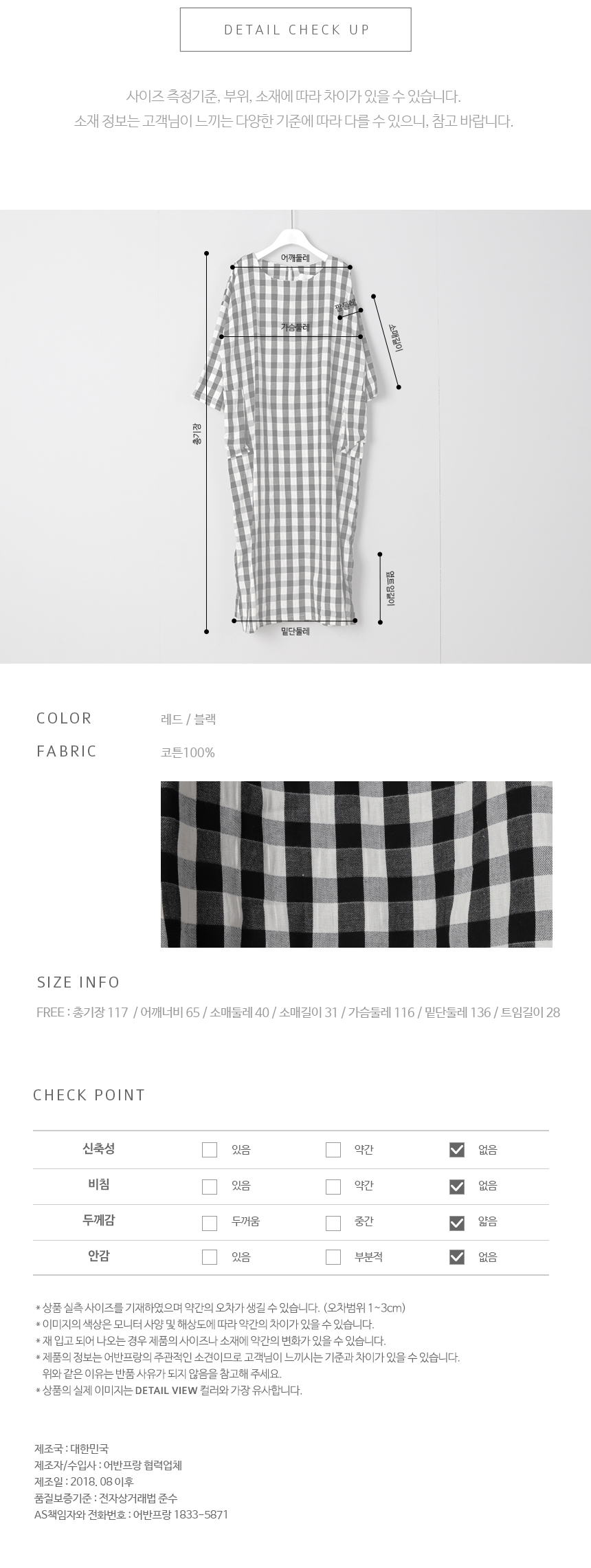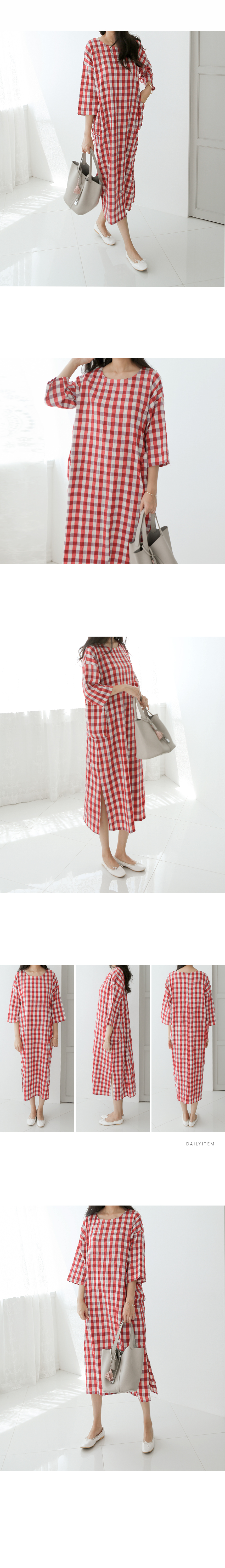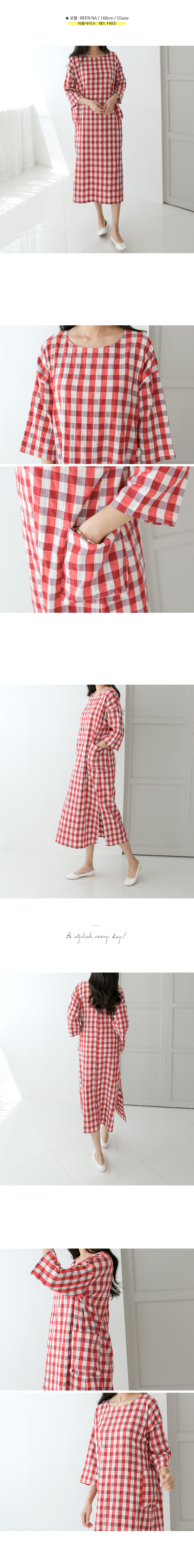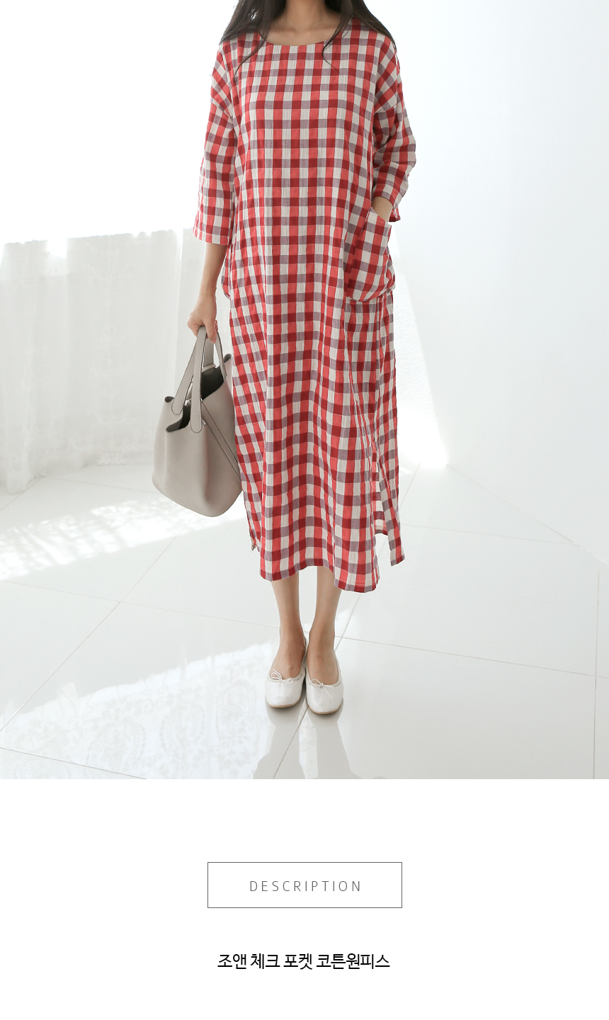 세련된 색감의 깅엄체크 포켓 코튼 원피스