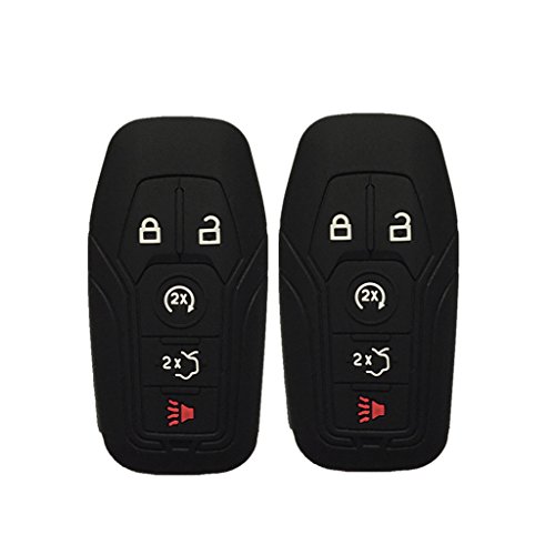 A Pair Black Silicone Rubber Keyless Entry Remote Key Fob Case Skin Cover Protector fit for Ford Fusion Mustang Lincoln MKZ MKC