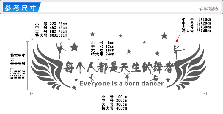 少儿舞蹈音乐教室芭蕾培训班少年宫兴趣班装饰墙贴跳舞翅膀贴纸画