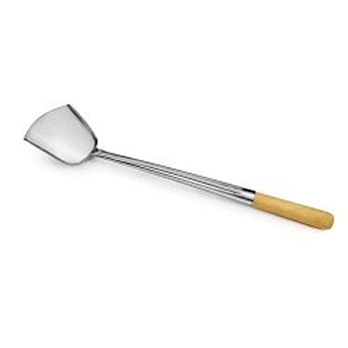 An essential tool for stir-frying is this long-handled utensil used for keeping the food in motion over the heat. This Chinese spatula has a wide, slightly curved metal blade that is perfect for the job. This shovel-like tool makes cooking and scooping in a hot wok quick, easy, and efficient. Stainless steel with wooden handle Approx. dimensions: 12cm x 10.7cm (Blade) | 39cm (Handle) Excellent quality Perfect for home or professional use 0 |