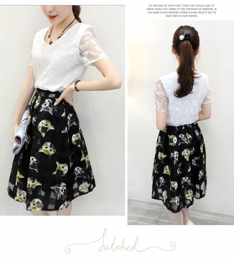 夏季新款韩版女装印花连衣裙夏装两件套欧根纱套装裙