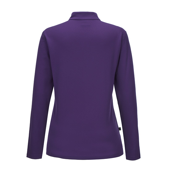 - 조직감이 있는 솔리드 컬러의 여성 기본형 긴팔 집업 티셔츠.
