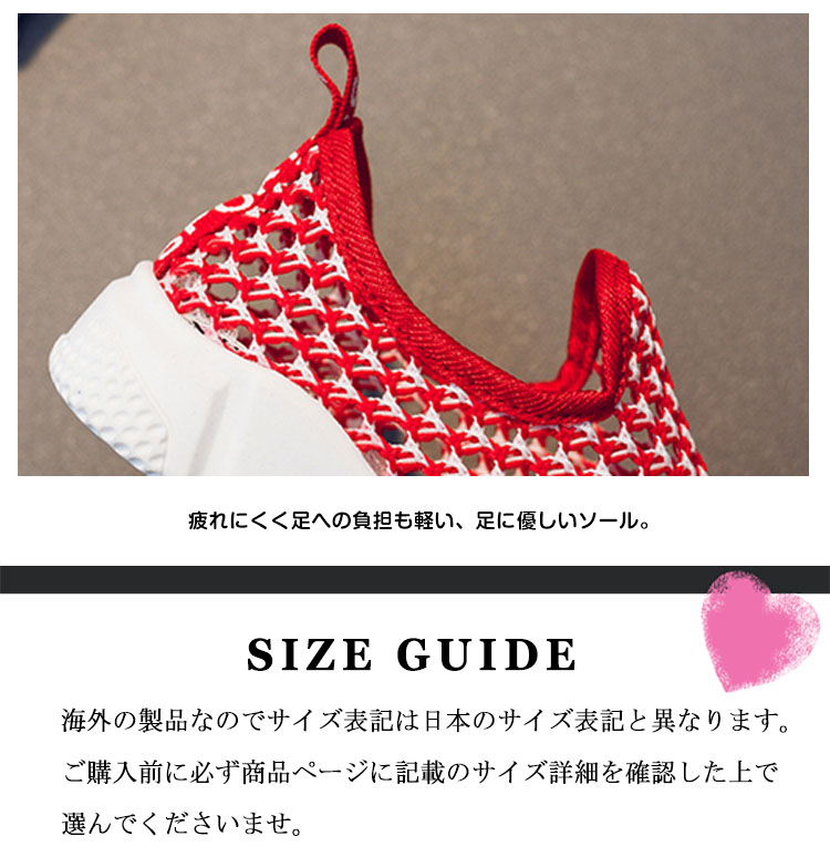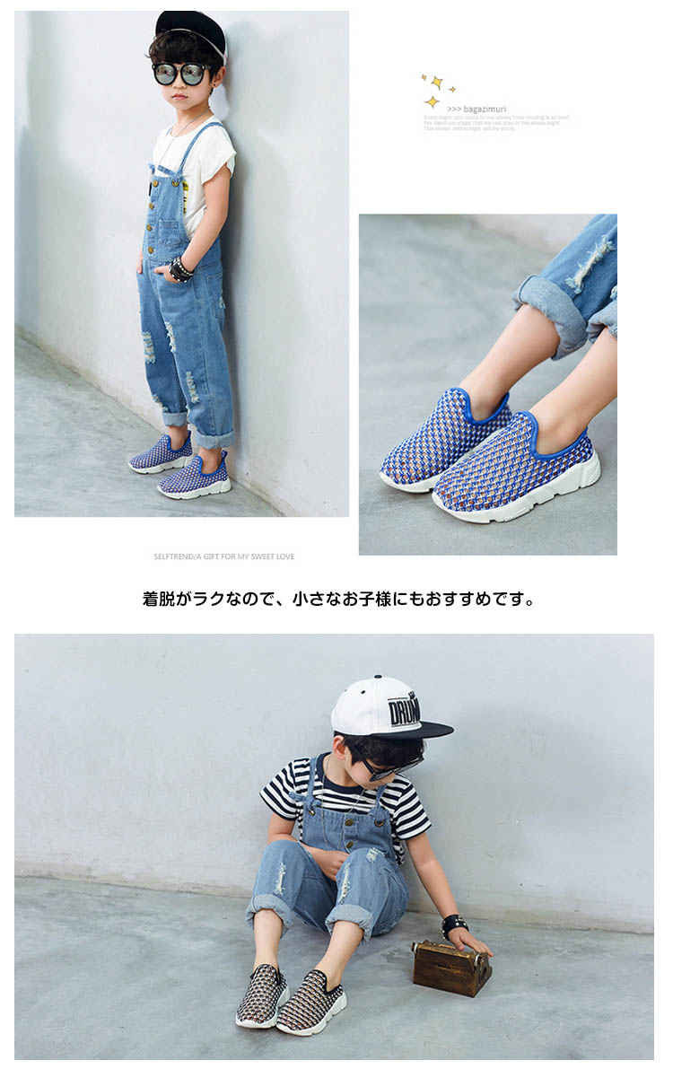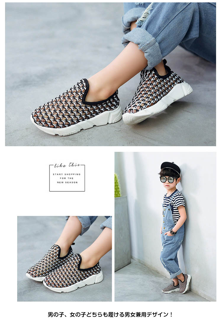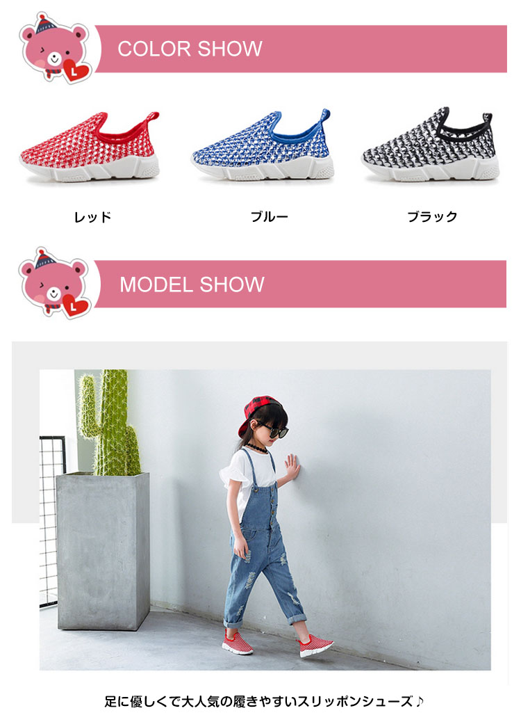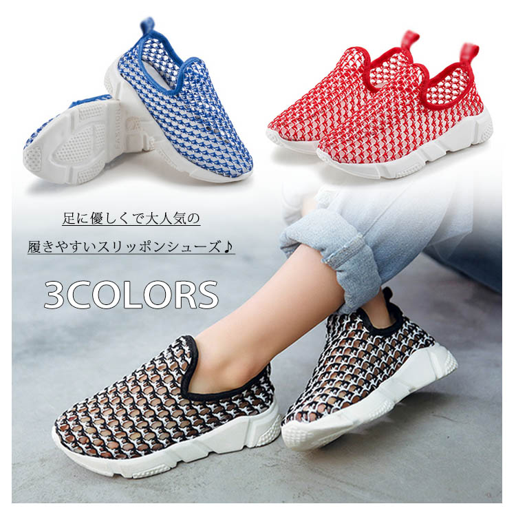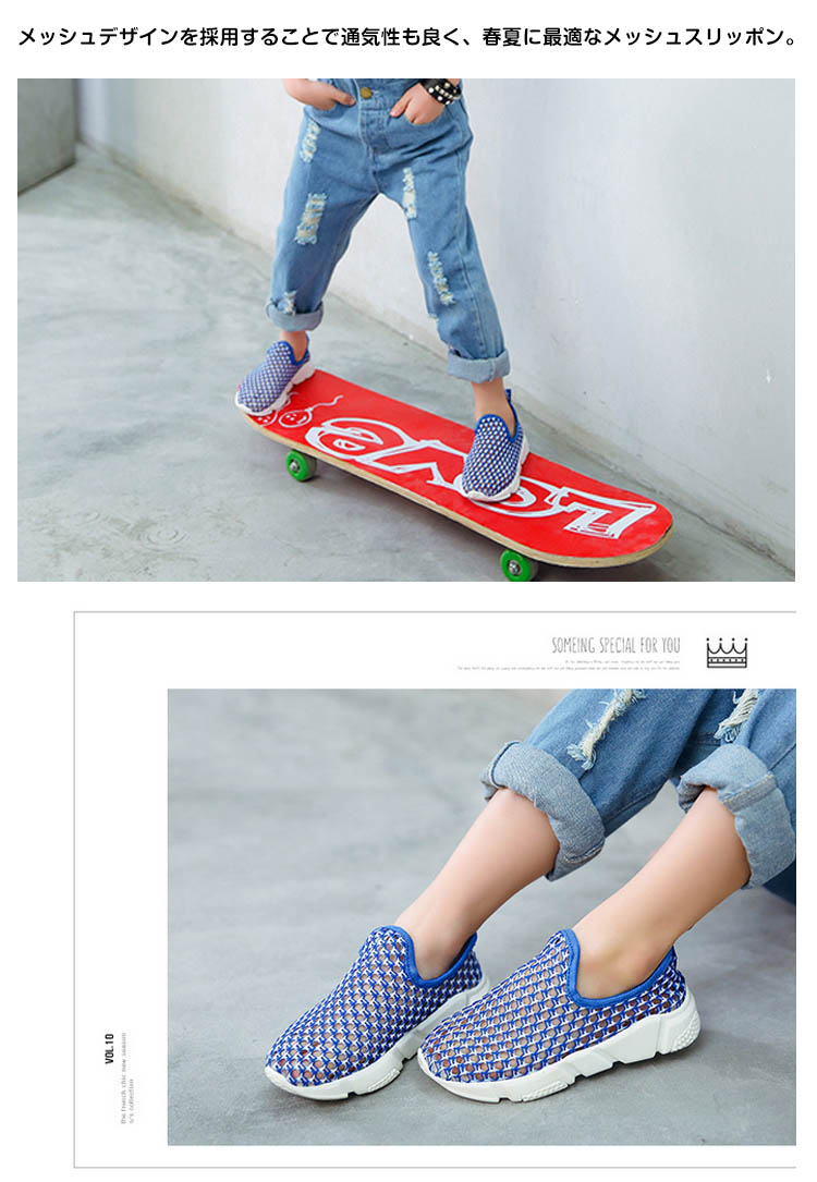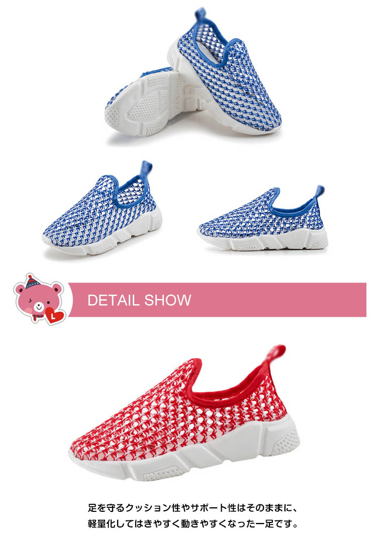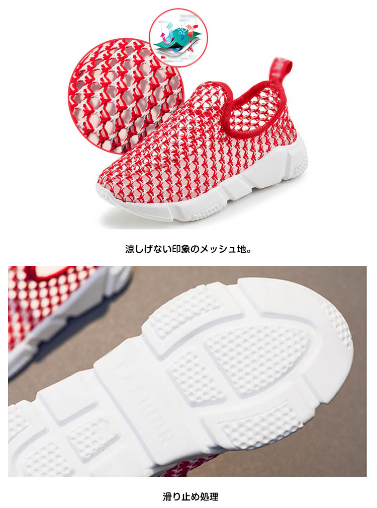| 足に優しくで大人気の履きやすいスリッポンシューズ♪メッシュデザインを採用することで通気性も良く、春夏に最適なメッシュスリッポン。着脱がラクなので、小さなお子様にもおすすめです。男の子、女の子どちらも履ける男女兼用デザイン! | |