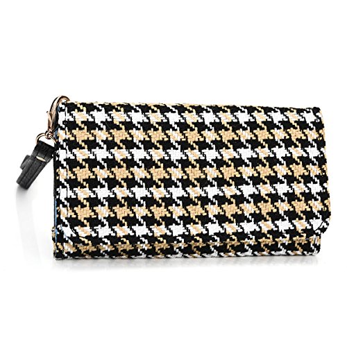 This sleek and unique weaved twine houndstooth designed wallet will hold your smart phone. With this wallet it's perfect for placing into your handbag or for use as a small clutch with the included wrist strap - it can hold everything you need for a night out. It will hold any smart phone with or less than 5.2 inches. (Smaller phones with cases will fit as well)