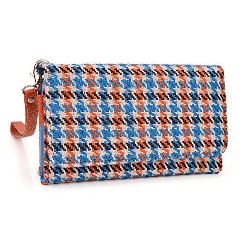 Kroo Clutch Wristlet Wallet Case for Smartphones up to 5.2-Inch - Non-Retail Packaging - Blue Houndstooth and Orange