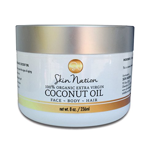 -. Binding : Misc. -. Brand : Skin Nation -. EAN : 0640746793851 -. Feature : Made of 100% Organic Extra Virgin Coconut Oil / A cold-pressed, pure, natural and unrefined product / Naturally full of antioxidants and an endless shelf life / Nourishment for your skin with so many beauty uses / Natural state is an off-white solid at temperatures below 76 degrees F and will become a liquid above this temperature -. IsAdultProduct : 0 -. Label : Skin Nation Beauty -. Manufacturer : Skin Nation Beauty -. MPN : 1 -. PackageQuantity : 1 -. PartNumber : 1 -. ProductGroup : Beauty -. ProductTypeName : BEAUTY -. Publisher : Skin Nation Beauty -. Studio : Skin Nation Beauty -. Title : Organic Extra Virgin Coconut Oil for Face, Body and Hair - Skin Nation by Michelle Stafford -. UPC : 640746793851