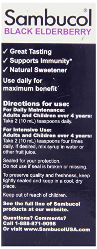 Sambucol Sugar Free Syrup, Black Elderberry, 4 Ounce