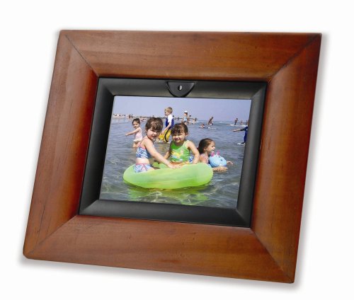 -. Feature : 5.6-inch digital photo frame with 320 x 234 LCD display / Built-in memory card reader supports SD, MMC, and MS formats / Displays saved photos within frame individually or in slide-show mode / Compatible with JPEG and AVi formats; genuine wood outer frame / Measures 8.26 x 6.69 x 3.94 inches (W x H x D); 90-day warranty