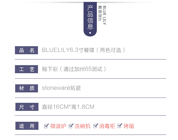 品名:BlueLily6.3英寸餐碟(两色可选)
