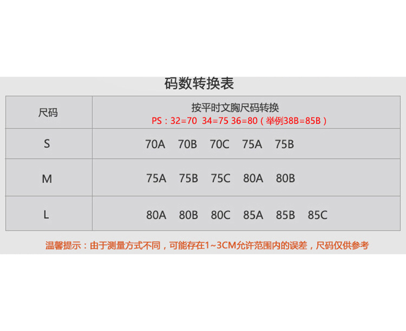 Size S (70A-75B), M (75A-80B), L (80A-85C)