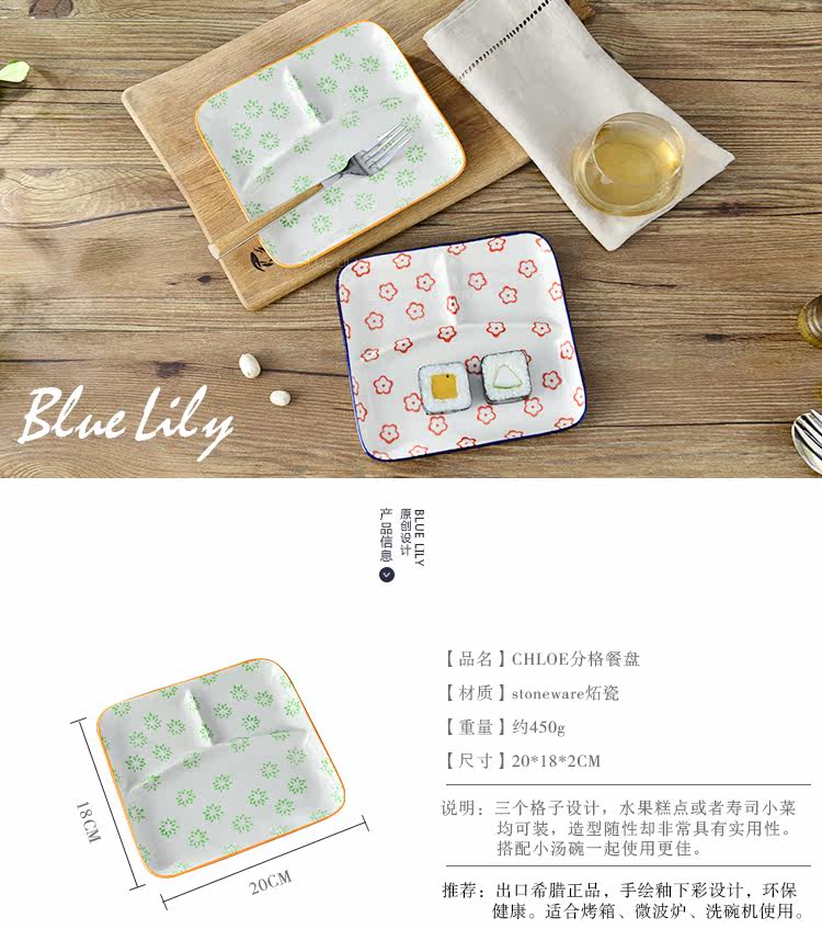 陶瓷西餐盘早餐分格餐盘 水果盘点心盘蛋糕盘分隔菜盘
