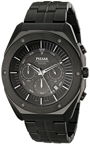 -. Binding : Watch -. Brand : Pulsar -. Color : black -. Department : mens -. EAN : 0037738143976 -. Feature : Chronograph measures time in 1 second increments / Stopwatch measures elapsed time up to 60 minutes / Japanese-quartz Movement / Case Diameter: 45mm / Water resistant to 330 feet (100 M): suitable for snorkeling, as well as swimming, but not diving -. Label : Pulsar -. Manufacturer : Pulsar -. Model : PT3521 -. MPN : PT3521 -. PackageQuantity : 1 -. PartNumber : PT3521 -. ProductGroup : Watch -. ProductTypeName : WATCH -. Publisher : Pulsar -. Studio : Pulsar -. Title : Pulsar Men's PT3521 On The Go Analog Display Japanese Quartz Black Watch -. UPC : 037738143976