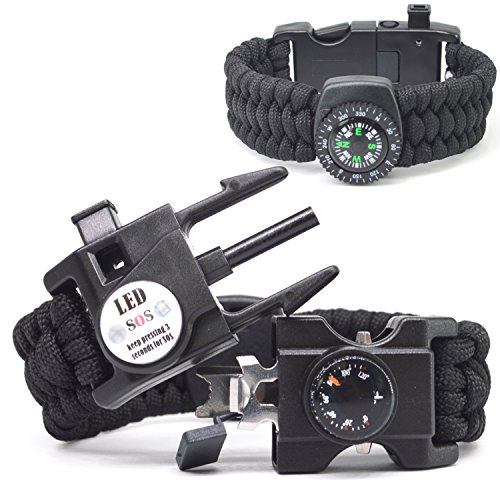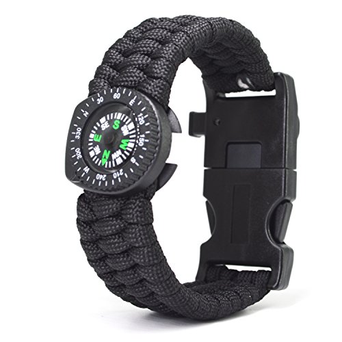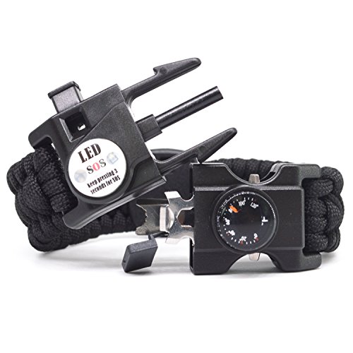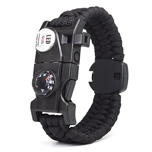 - ✔ SAFETY ENHANCED: Multifunctional 16-in-1 Paracord Bracelet contains Parachute Rope, Thermometer, Build-in Waterproof Compass, Whistle, Flint Fire Starter, Stainless Steel Fire Scrapper, LED SOS Flashlight, Bicycle Spoke Drivers, Cellphone SIM Card Thimble, +/- Screwdriver, 3 size Hexagon Wrench, Sawtooth, Emergency Blade, Bottle Opener, Can Opener,Hanger Ring(can clip on Key Chain), provide safety for your navigation in wildness.