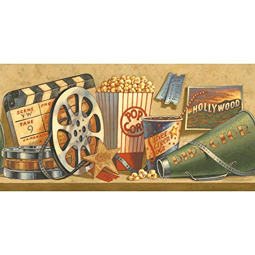 York Wallcoverings NV9727B Border Book Hollywood Border, Beige/Black/Off White/Red