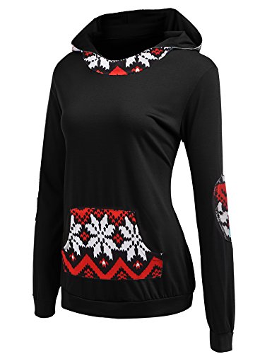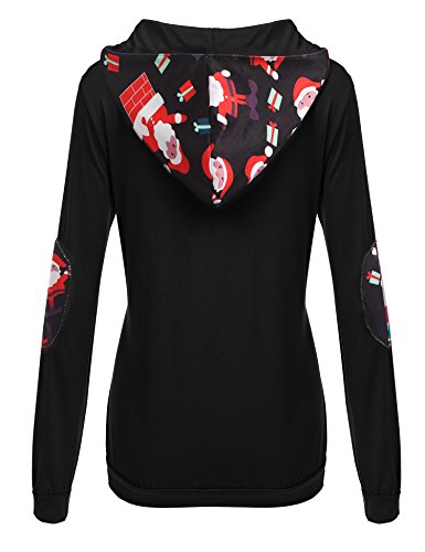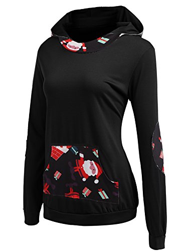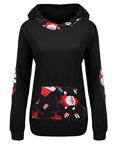 Beyove Women's Long Sleeve Christmas Pullover Sweatshirt Santa Claus Hoodie Tops Black-Santa Claus S