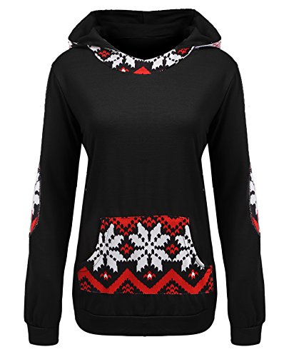 Beyove Women's Tunic Hoodies Long Sleeves Kangaroo Pocket Crewneck Sweatshirt Black-Snowflake M