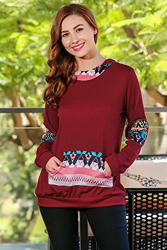Beyove Women's Pullover Hoodie Patchwork Printed Hooded Sweatshirt With Kangaroo Pocket