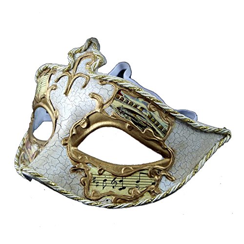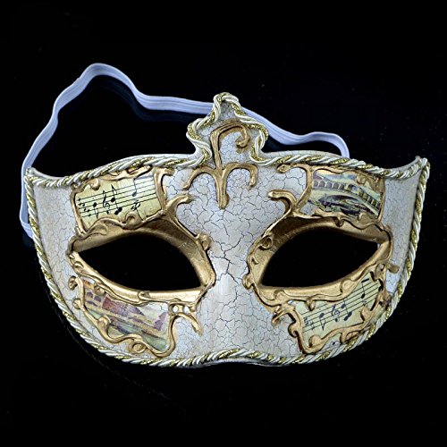 Exquisite Painted Music Antique Cracks Women/Men Venetian Masquerade Mask Ball (White)