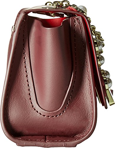 Color/material: cordial leather. Exterior design details: gold-tone hardware, floral appliques with faux pearls. Interior design details: suede lining, interior pocket. Measures 6.25in wide x 4.75in high x 3.25in deep. Shoulder strap drops 27in. Fold-over flap with turnlock closure. Imported. Please note: All measurements were taken by hand and are approximate; slight variations may occur.Feature