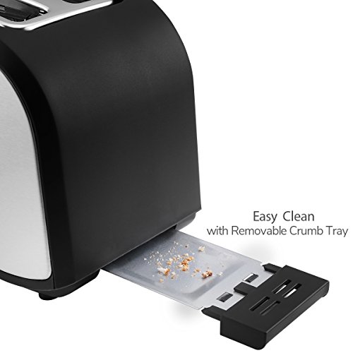 ♥ ONE -TOUCH FUNCTION: the Toaster comes with LED-indicator lights button and slide-out crumb tray makes cleanup a snap