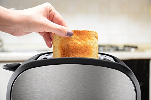 Features: The Slice Toaster will be a great addition to your kitchen or office. Features a beautiful brushed stainless steel body, it will look great on your countertop. Toaster is equipped with extra wide slots for toast, frozen waffles, toaster pastries and more.