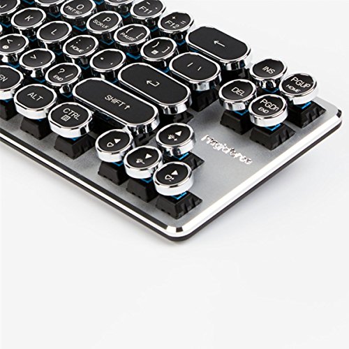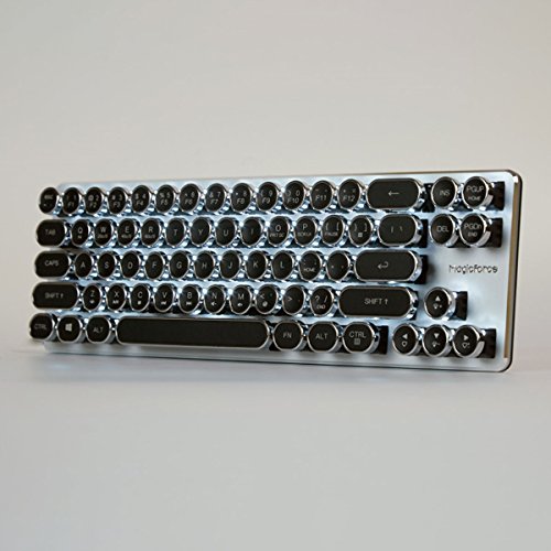 Mechanical Gaming Keyboard with Kailh Blue Switches White Backlight Silver Plate and Black Steampunk Retro Vintage Typewriter Style keycaps 68 Keys Mini Keyboard by Qisan