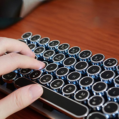 Vintage round typewriter keycaps with chrome plating. Unique Round keycaps vintage style delivers an awesome feeling, produced with ABS material. The text of the keycaps is non-transparent and it can not support backlit keyboards to shine through the text.