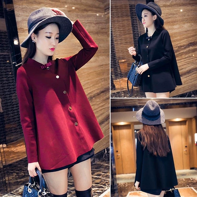 秋装韩版气质蝴蝶结A字斗篷上衣中长款娃娃领宽松长袖外套女