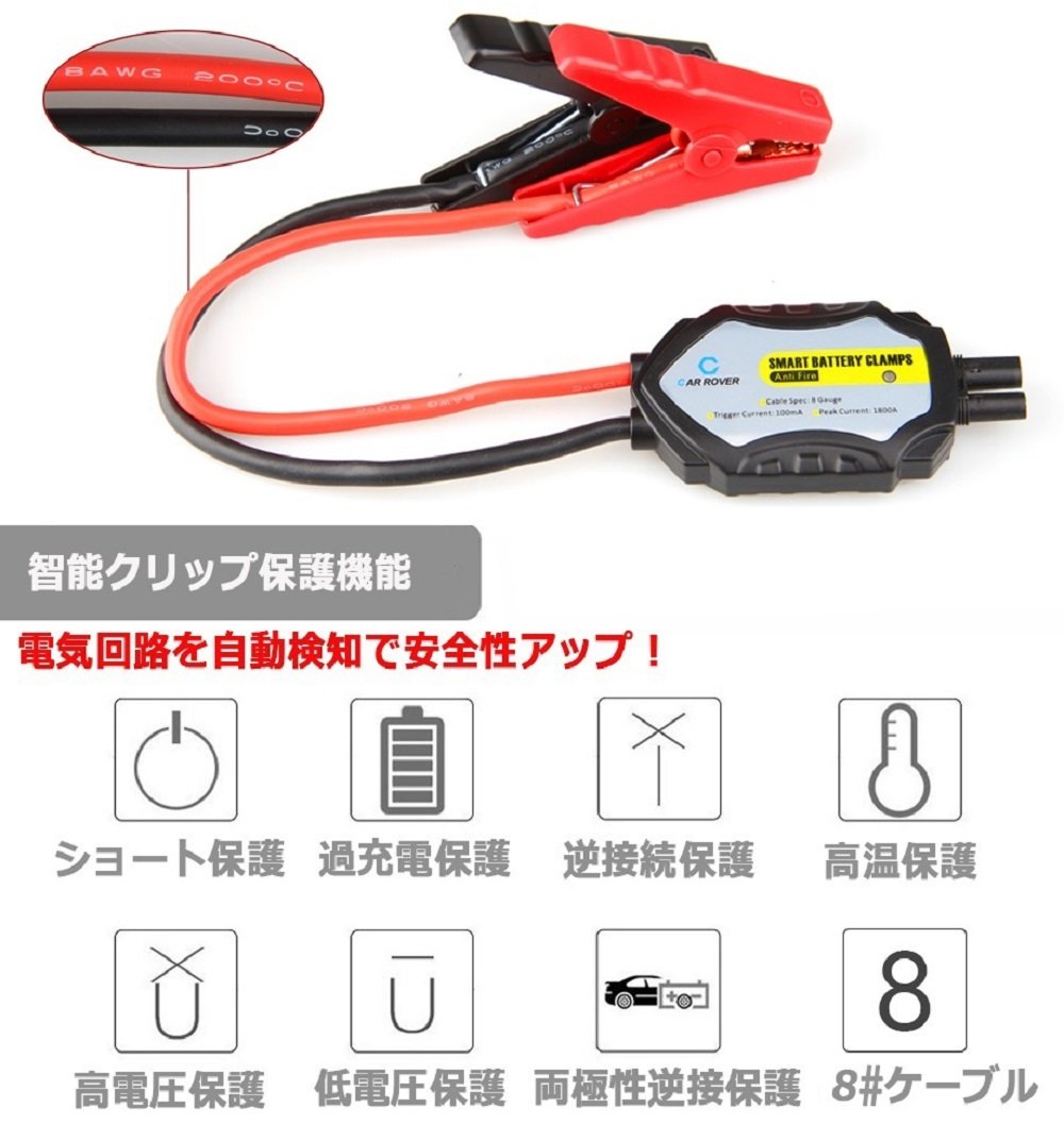 When the red terminal and the black terminal come into contact with each other, an alarm sounds and jumper cable of this product protects the product.