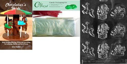 Cybrtrayd Santa-Reindeer Assortment Chocolate Mold with Chocolatier's Bundle of 25 Cello Bags, 25 Red Twist Ties and Chocolatier's Guide