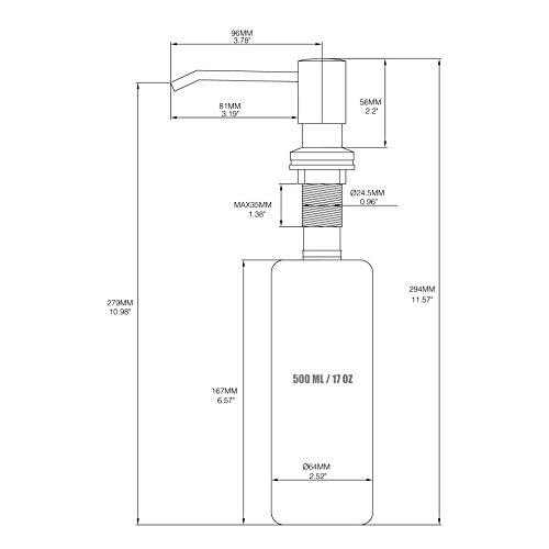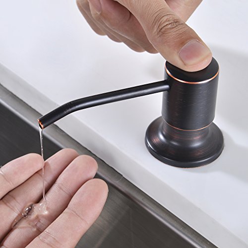 HUASONG Lead-Free 18/8 Stainless Steel Pump Built In Kitchen Sink Soap Dispenser, 17 OZ Large Capacity Liquid Bottle, 1.38 Inch Threaded Tube for Normal Deck Installation, Oil Rubbed Bronze