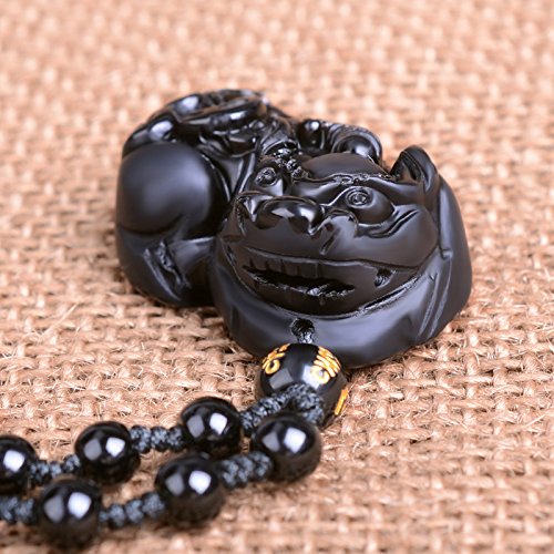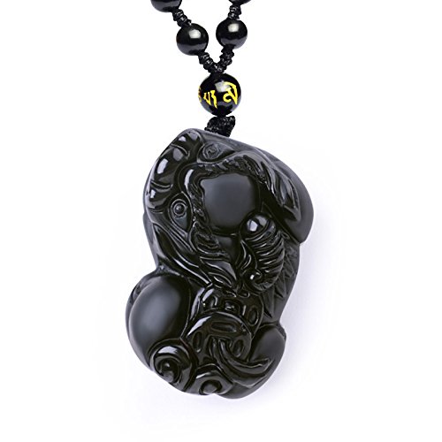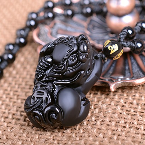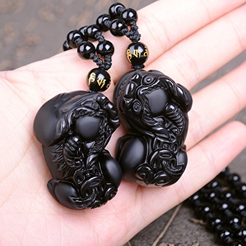 -. Title : Sinymilk Natural Obsidian Double Brave Troops Necklace Valentine's Day Amulet Mascot