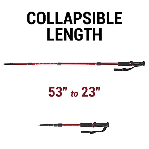 Trekking poles and hiking staffs are indispensable tools to casual walkers and serious hikers, backpackers, and mountaineers alike. Fully adjustable, shorten the poles on the fly using the simple twist lock to more easily make your uphill climbs. And for downhill? Just add some length to aid your descent. While they require more use of the arms, utilizing poles or a staff more evenly redistributes weight throughout the body and allows for increased hiking endurance. What's more, the shock-absorbing internal spring eases wear on weak or damaged ankles, knees and hips. A single lightweight pole weighs.75 lbs. and is 43" long when fully extended, and the telescoping design retracts all the way down to 20" to easily fit backpacks of many shapes and sizes. When used as a pair of trekking poles, the ergonomic plastic grip couldn't be more comfortable, but also features a flared top that allows each pole to also be used as a single hiking staff. Each pole also features a secondary soft foam grip, and can be secured with a sturdy, adjustable wrist strap. The black carbonite tip is ideal for rough, craggy terrain and can also function as an ice spike. Also included is a vulcanized rubber foot ideal for hard surfaces and asphalt. Finally, an optional snow tip can be screwed onto the tip to prevent the stick from sinking too deeply into soft surfaces. . 0 |