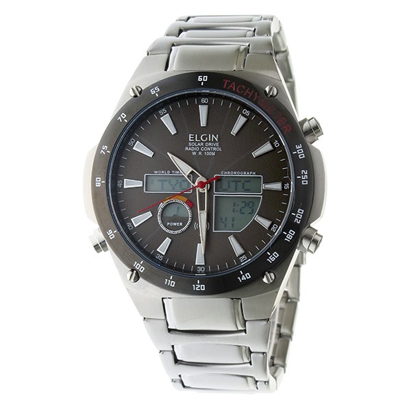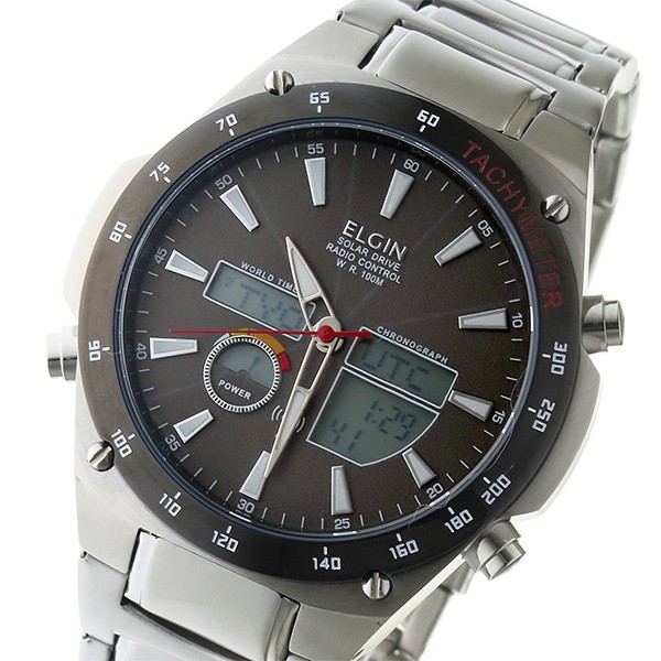 エルジン ELGIN 電波 ソーラー メンズ ウォッチ 時計 グレー