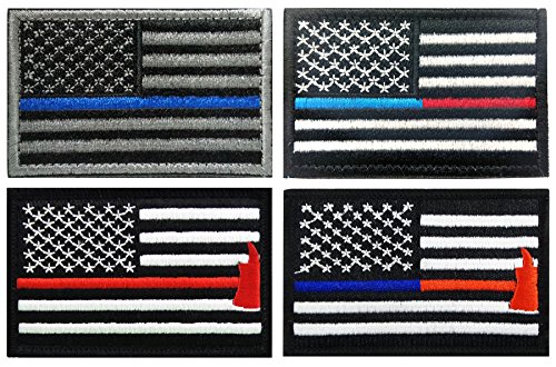 WZT 4 Pcs Axe US Flag Thin Red Line Morale Patch United States