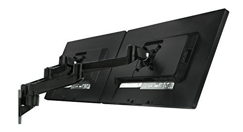 Solid Aluminum die-cast construction; Space saving with its compact design, Supports two LCD monitors between 15" – 24”
