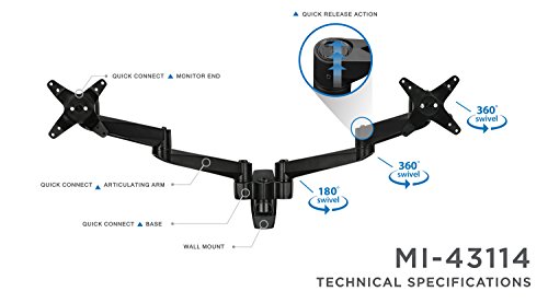 Quick mount & quick release designs at 2 connecting points: swing arm and monitor end; Maximum adjustment rendered by tilting, swiveling and pivoting; Swift and easy movements and adjustments