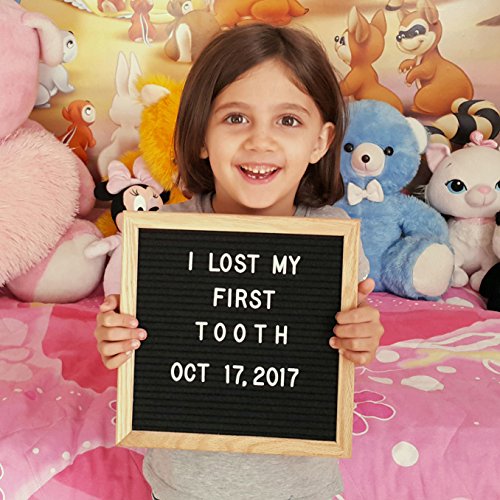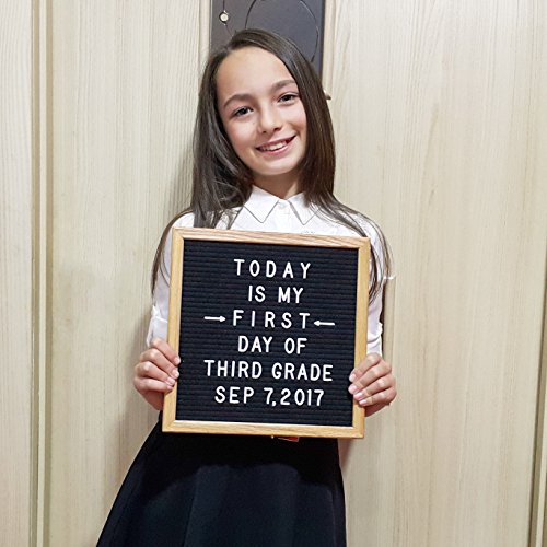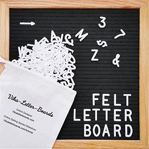 Black Felt Letter Board 10x10 Inches. Changeable Letter Boards Include Stand, Wall Mounting Hook, 300 White Plastic Letters & Oak Wooden Frame.