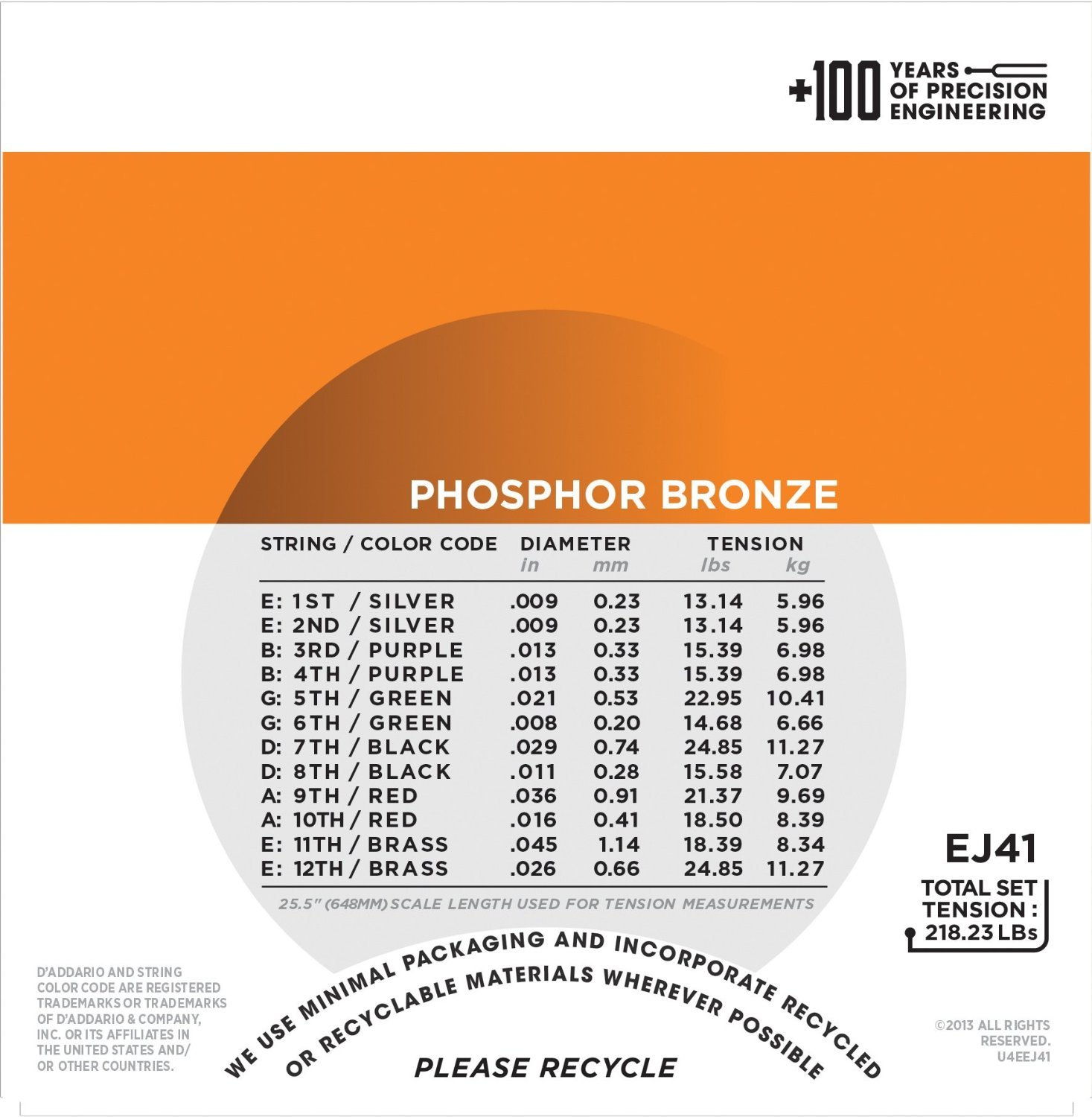 D Addario Addario Acoustic Guitar Strings Phosphor Bronze Extra Light 12-string .009-.045 EJ41 x 10 set [domestic regular goods]