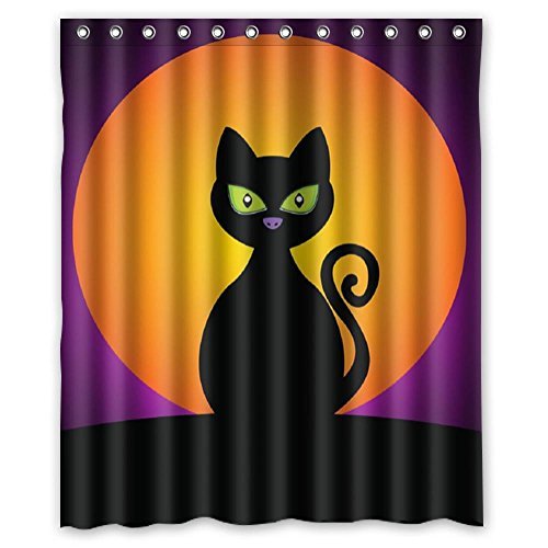 -. Title : I-Manggo Lovely Cat Black Halloween Moon Custom Design Waterproof Shower Curtain Bathroom Curtainses