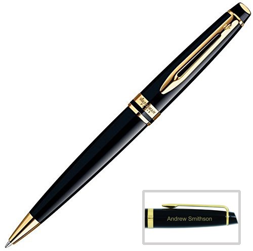 -. Binding : Office Product -. Brand : DaysP.R.Ing Pens -. Color : Black -. Feature : Free Engraving Included, up to 24 character and spaces max / Comes in a Waterman pen gift case / Geniune Waterman Expert Pen, Made in France / Laser engraving shows up gold, matches the trim -. Label : Waterman -. Manufacturer : Waterman -. MPN : GP-561 -. PackageQuantity : 1 -. PartNumber : GP-561 -. ProductGroup : Office Product -. ProductTypeName : WRITING_INSTRUMENT -. Publisher : Waterman -. Studio : Waterman -. Title : Engraved / Personalized Waterman Expert Black with Gold Trim Ballpoint