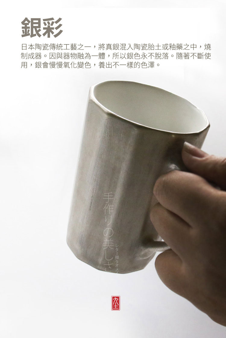 手工银彩釉 马克杯 日式安藤雅传统陶艺水杯 东方禅意陶瓷杯