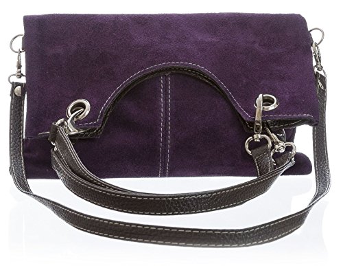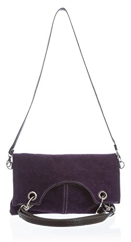 Italian suede leather top handle evening clutch shoulder bag, Supplied with a Big Handbag Shop Branded Charm