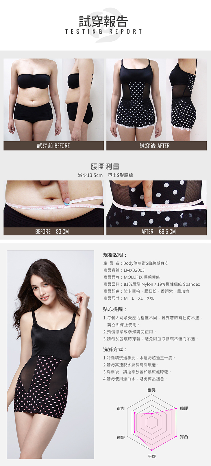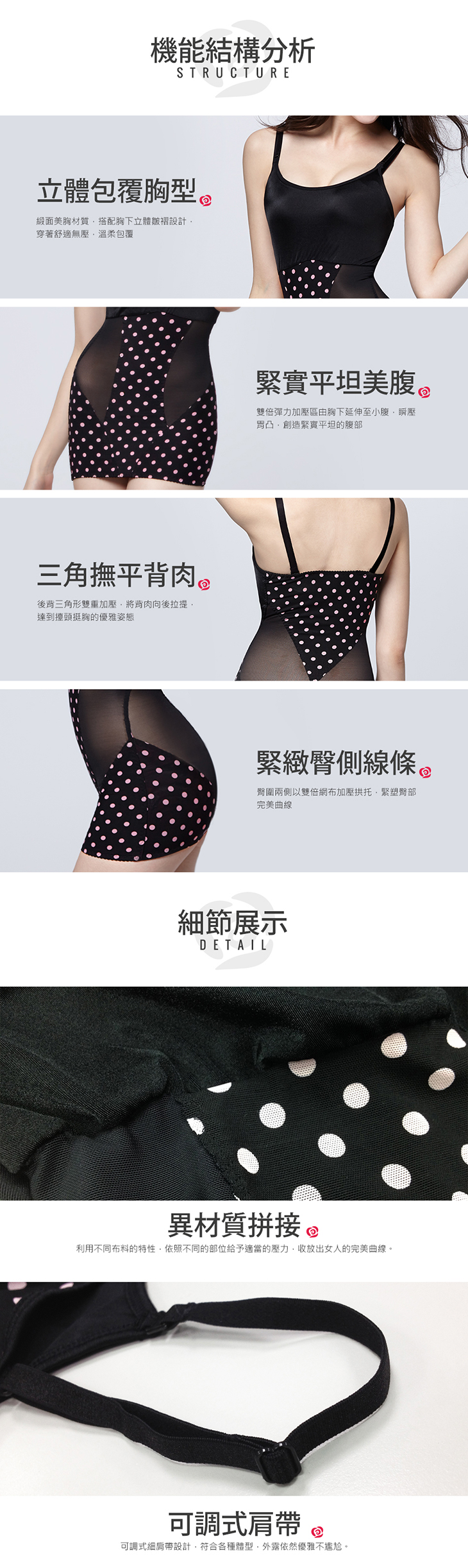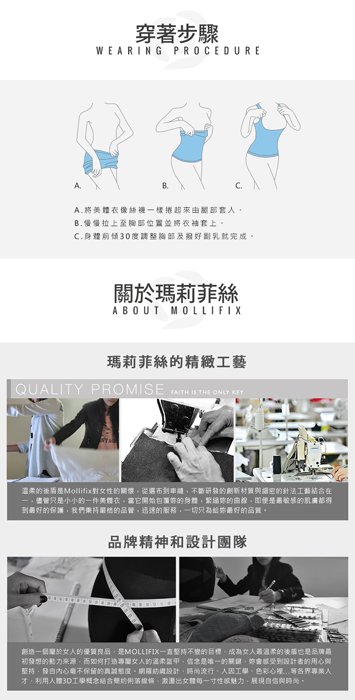 針對胸.腰.腹.背分區強塑,給予不同的提拉加壓,創造迷人弧度。