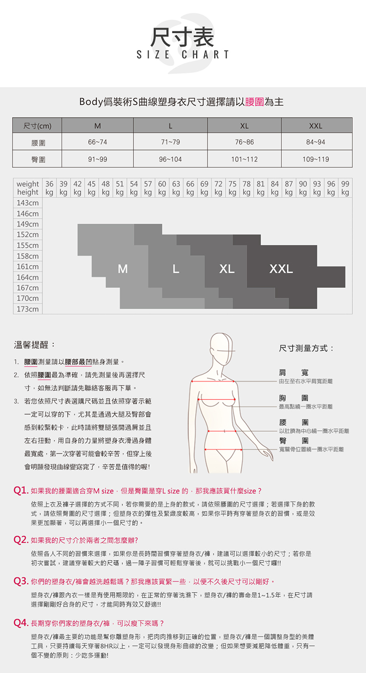 使用注意事項:1.長時間維持坐姿者,請將修飾褲調整至最舒適程度。
