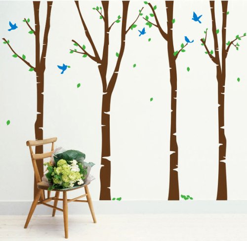 Pop Decors Removable Vinyl Art Wall Decals Mural for Nursery Room, Birch Trees