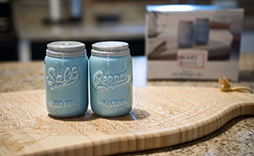 Studio : NEW! Blue Mason Jar Measuring Cups Set! These Unique Stackable Ceramic Measuring Cups come in a Blue Mason Cup Design! Four Cup Kitchen Set Includes: 1 Cup, 1/2 Cup, 1/3 Cup and 1/4 Cup Publisher : NEW! Blue Mason Jar Measuring Cups Set! These Unique Stackable Ceramic Measuring Cups come in a Blue Mason Cup Design! Four Cup Kitchen Set Includes: 1 Cup, 1/2 Cup, 1/3 Cup and 1/4 Cup Product Description The Smart Crafts Salt and Pepper Shaker Set - Mason Jar Salt and Pepper Shakers are as practical as they are beautiful. Inspired by vintage canning jars, they will add a touch of nostalgia to your decor and convenience to your cooking! Great decorative set that is functional too! This set includes: 1 Salt Shaker and 1 Pepper Shaker 0