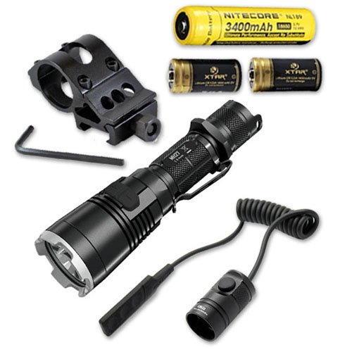 Bundle: Nitecore MH27 Rechargeable Flashlight w/ Offset Gun Mount, RSW1 Pressure Switch, NL189 Battery & 2 Premium CR123A Batteries