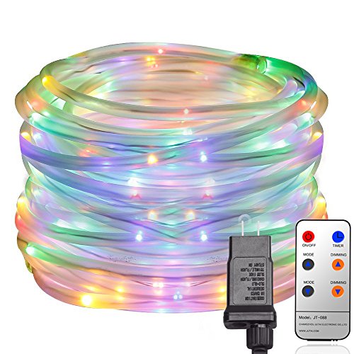 33Ft 108 LED Dimmable Rope Lights, YINUO LIGHT Waterproof Tube String Lights with Remote, Firefly lights, 8 Mode Fairy Lights For Christmas Xmas Halloween Home Outdoor Decoration(Multi-color)